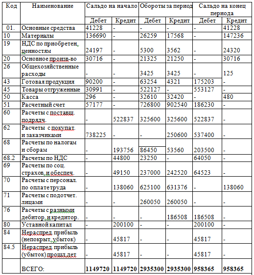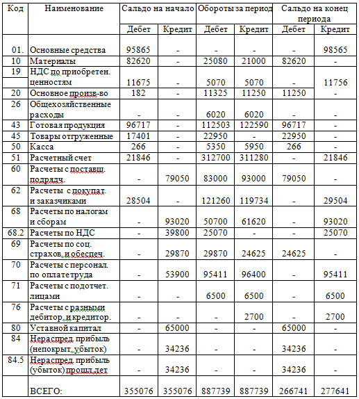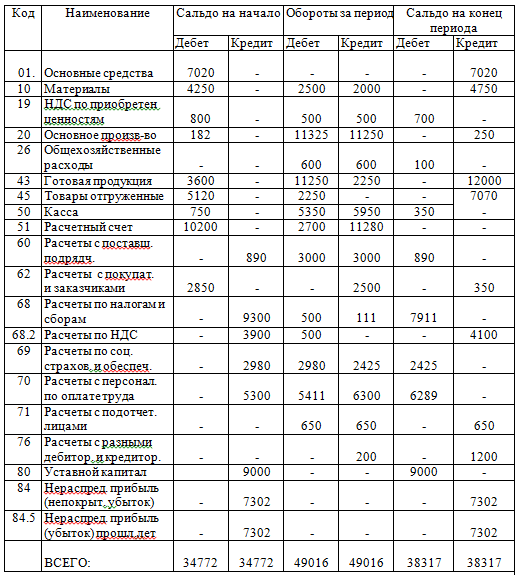 1 Вариант ЗАО "Омега" Оборотно - сальдовая ведомость за 2018г