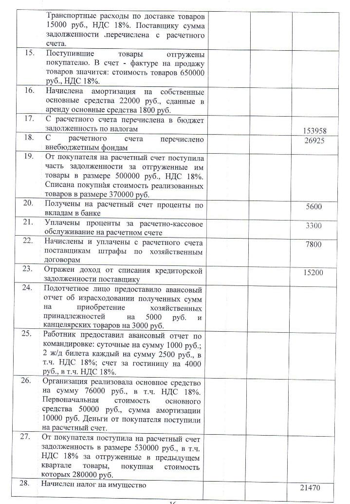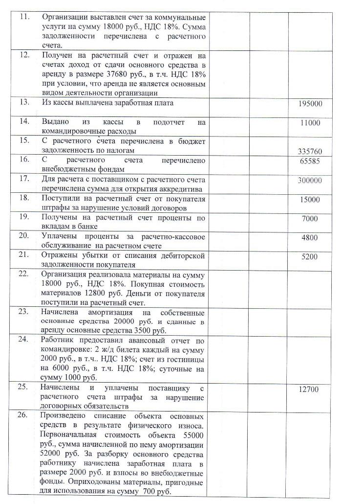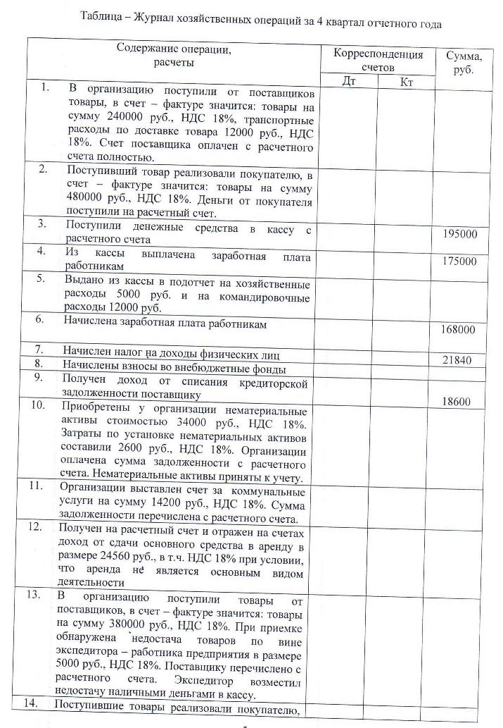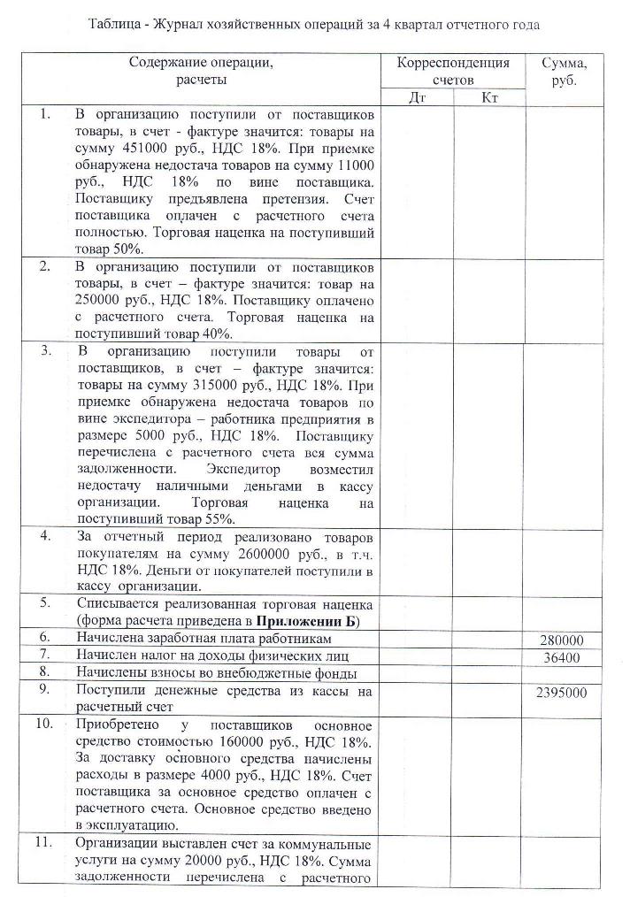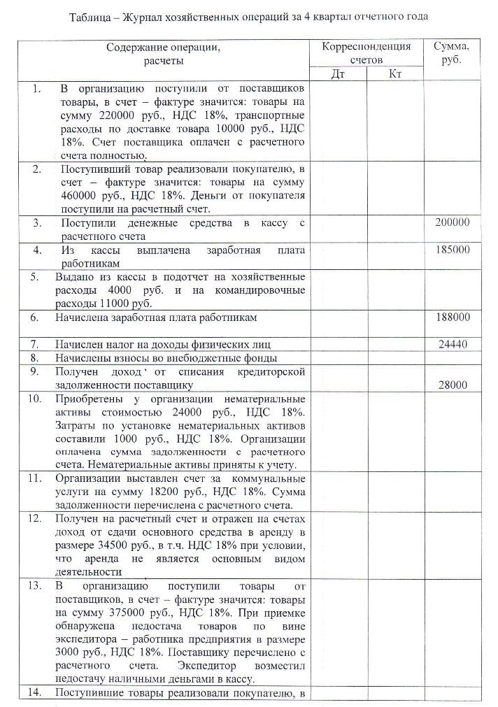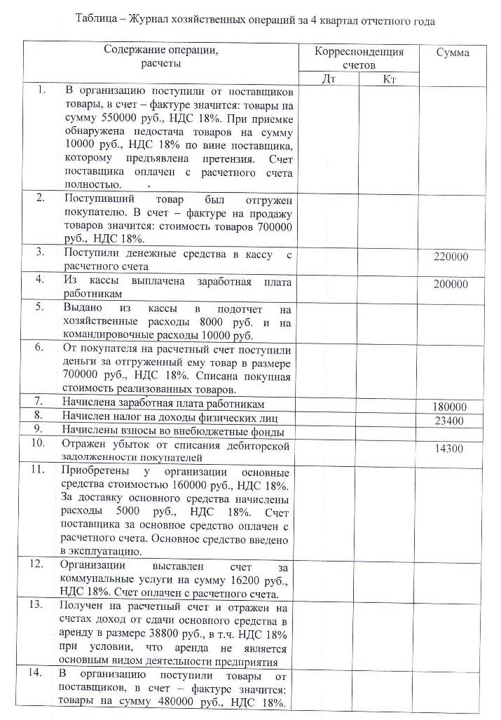 На основании предложенных хозяйственных операций за 4 квартал отчетного года и дополнительных сведений необходимо составить журнал хозяйственных операций, оборотную ведомость по синтетическим счетам, заполнить формы бухгалтерской отчетности за отчетный год. Ставки налогов применяются действующие на момент выполнения контрольной работы. При решении задачи данные округляются до целых рублей, бухгалтерская отчетность заполняется в тысячах рублей. Вариант выполнения задания в контрольной работе определяется по последней цифре номера зачетной книжки студента:
