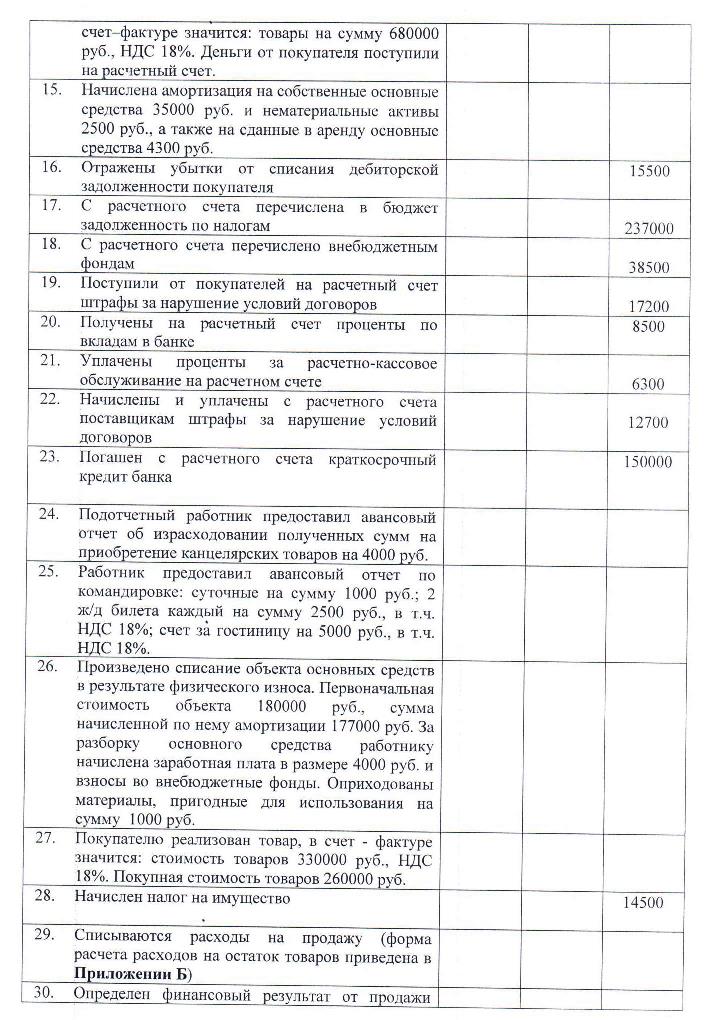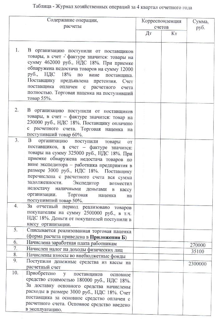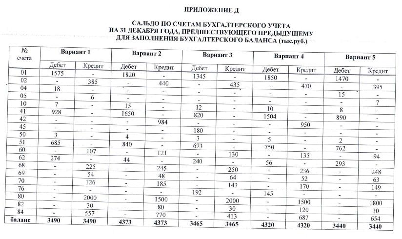 ПЕРЕЧЕНЬ ПРИЛОЖЕНИЙ Приложение А Образец титульного листа контрольной работы Приложение Б Расчет реализованной торговой наценки и расчет расходов на остаток товаров Приложение В Сальдо по счетам бухгалтерского учета на 1 октября отчетного года для составления оборотной ведомости Приложение Г Сальдо по счетам бухгалтерского учета на 31 декабря предыдущего года для заполнения бухгалтерского баланса Приложение Д Сальдо по счетам бухгалтерского учета на 31 декабря года, предшествующего предыдущему для заполнения бухгалтерского баланса Приложение Е Сальдо по счетам бухгалтерского учета на 31 декабря предыдущего года для заполнения отчета о финансовых результатах