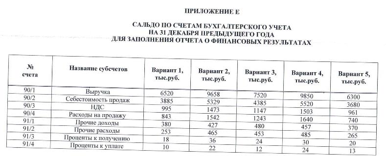 Дополнительные сведения для заполнения форм отчетности 1) Сальдо по счетам бухгалтерского учета на 1 октября отчетного года для составления оборотной ведомости по синтетическим счетам за 4 квартал приведено в Приложении В, при этом счета 90 «Продажи», 91 «Прочие доходы и расходы» и 99 «Прибыли и убытки» привести по субсчетам. 2) Данные для заполнения бухгалтерского баланса за предыдущий год и год, предшествующий предыдущему, приведены в Приложении Г и Д. 3) Данные для заполнения отчета о финансовых результатах за предыдущий год приведены в Приложении Е. 4) Данные для заполнения отчета об изменениях капитала: Сумма чистой прибыли в предыдущем году составила 980 тыс.руб., начислены и выплачены дивиденды на сумму 750 тыс.руб. и произведены отчисления в резервный фонд в размере 20 тыс.руб. В отчетном году были начислены и выплачены дивиденды на сумму 860 тыс.руб., произведены отчисления в резервный фонд в размере 40 тыс.руб. 5) Данные для заполнения отчета о движении денежных средств: В предыдущем и отчетном году суммы денежных средств поступали соответственно: выручка от продажи товаров покупателям – 9734 и 9952 тыс.руб., арендные платежи – 300 и 350 тыс.руб., прочие поступления по текущей деятельности – 360 и 420 тыс.руб., выручка от продажи основных средств – 240 и 280 тыс.руб. В предыдущем и отчетном годах суммы денежных средств были направлены соответственно: на оплату товаров, работ, услуг – 5775 и 5434 тыс.руб., на оплату труда – 700 и 850 тыс.руб., , на расчеты по налогам и сборам – 2460 и 2378 тыс.руб., на прочие расходы по текущей деятельности – 458 и 376 тыс.руб., на приобретение объектов основных средств – 380 и 320 тыс.руб., на выплату дивидендов – 750 и 860 тыс.руб. 6) Данные для заполнения пояснений к бухгалтерскому балансу и отчету о финансовых результатах: В предыдущем и отчетном году произошло поступление основных средств на сумму 456 и 412 тыс.руб., а выбытие на сумму 316 и 321 тыс.руб., при этом сумма начисленной амортизации по основным средствам составила 250 и 272 тыс.руб., а списанная амортизация при выбытии объекта – 140 и 194 тыс.руб. соответственно. В предыдущем и отчетном году произошло поступление товарно-материальных ценностей на сумму 2314 и 2446 тыс.руб., а выбытия на сумму 2169 и 2574 тыс.руб., соответственно. В течение отчетного и предыдущего года произошло увеличение дебиторской задолженности соответственно на сумму 225 и 210 тыс.руб. в результате хозяйственных операций, также на 30 и 20 тыс.руб. в виде причитающихся штрафов, уменьшение задолженности произошло соответственно на сумму 212 и 200 тыс.руб. в результате ее погашения, также на 40 и 36 тыс.руб. по причине списания на финансовый результат. В течение отчетного и предыдущего года произошло увеличение кредиторской задолженности соответственно на сумму 435 и 287 тыс.руб. в результате хозяйственных операций, также на 35 и 28 тыс.руб. в виде причитающихся штрафов, уменьшение задолженности произошло соответственно на сумму 548 и 569 тыс.руб. в результате ее погашения, также на 37 и 32 тыс.руб. по причине списания на финансовый результат. Суммы расходов по обычным видам деятельности за отчетный и предыдущий года составили соответственно: материальные затраты – 4969 и 5329 тыс.руб., затраты на оплату труда – 850 и 750 тыс.руб., отчисления на социальные нужды – 221 и 195 тыс.руб., амортизация – 228 и 186 тыс.руб., прочие затраты – 294 и 411 тыс.руб.