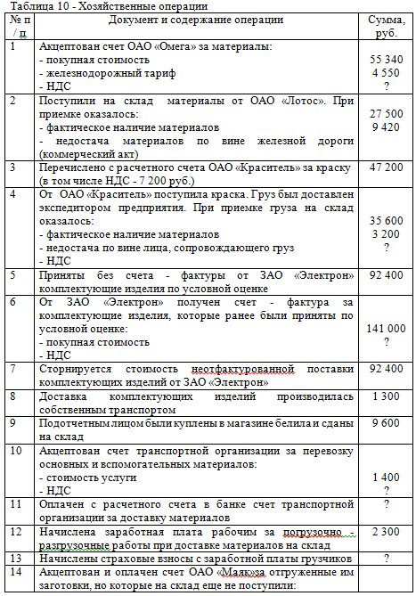 Задание 3 Оформите бухгалтерскими проводками хозяйственные операции по приобретению материалов (таблица 10).