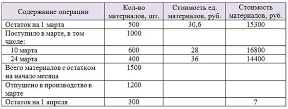 ВАРИАНТ 20 Задание 1. Используя нижеприведенные данные, определите стоимость остатка материалов на 1 апреля, учитывая, что материалы оцениваются методом ФИФО. Составьте проводки, отражающие отпуск материалов в производство.