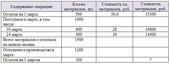 ВАРИАНТ 10 Задание 1. Используя нижеприведенные данные, определите стоимость остатка материалов на 1 апреля, учитывая, что материалы оцениваются методом ФИФО. Составьте проводки, отражающие отпуск материалов в производство.