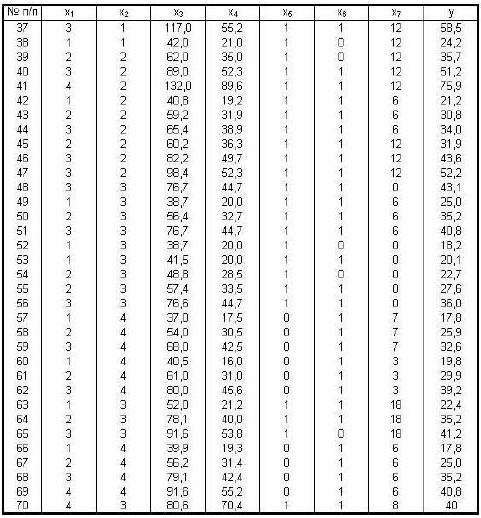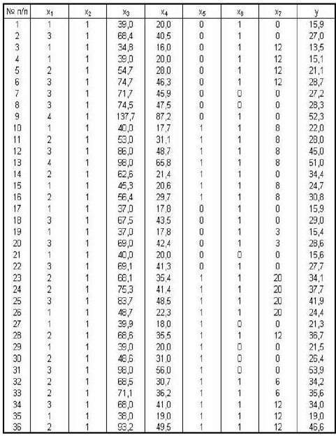 Задание к практической части В таблице ниже представлены данные о рынке строящегося жилья. В таблице приняты следующие обозначения: у - цена квартиры, тыс. долл.; х1 - число комнат в квартире; х2 - район города; х3 - общая площадь квартиры (м2); х4 - жилая площадь квартиры (м2); х5 - тип дома (1 – кирпичный, 0 – другой); х6 - наличие балкона (1 – есть, 0 – нет); х7 - число месяцев до окончания срока строительства. Задание 1) Постройте уравнение регрессии, характеризующее зависимость цены от всех факторов, в линейной и степенной форме. Установите, какие факторы мультиколлинеарны. В какой модели мультиколлинеарность проявляется сильнее? 2) Определите факторы, сформировавшие цену квартир в строящихся домах. 3) Отберите статистически значимые факторы. Постройте уравнение регрессии со статистически значимыми факторами. Выбор варианта практического задания: Каждый вариант данного задания должен содержать выборку из 25-ти идущих подряд строк: 1 вариант – с 1 по 25 строки включительно; 2 вариант – с 6 по 30 строки; 3 вариант – с 11 по 35 строки; 4 вариант – с 16 по 40 строки; 5 вариант – с 21 по 45 строки; 6 вариант – с 26 по 50 строки; 7 вариант – с 32 по 55 строки; 8 вариант – с 36 по 60 строки; 9 вариант – с 41 по 65 строки; 10 вариант – с 46 по 70 строки.