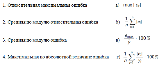 Задача 3. Сопоставьте показатели, часто используемые в статистическом анализе, с соответствующими им формулами: