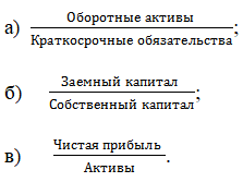 Вариант 2 Задание 1: Теоретические вопросы 1 Ликвидность коммерческого банка, оценка и регулирование риска ликвидности. 2 Операции коммерческого банка с ценными бумагами. Задание 2: Тестовые задания 1. Вид операции, выполняемой банком с целью увеличения своего кредитного потенциала, – это: а) активная; б) пассивная; в) кредитная. 2. Конкретным результатом банковской деятельности является: а) организация денежного оборота; б) создание кредитных средств обращения; в) создание банковского продукта. 3. Исключительно банковской является следующая операция: а) инкассация денег, векселей, платежных и расчетных документов, кассовые операции; б) осуществление безналичных расчетов; в) кредитование. 4. Превращение сбережений в инвестиции является … функцией банка. а) макроэкономической; б) микроэкономической. 5. Денежные средства, образуемые за счет отчислений от прибыли и предназначенные для покрытия возможных убытков по операциям банков, – это: а) добавленный капитал; б) резервный фонд; в) фонды специального назначения. 6. Сберегательные и депозитные сертификаты относятся к …источникам привлеченных средств: а) депозитным; б) недепозитным. 7. Определите по формуле показатель (коэффициент) финансового состояния заемщика. Укажите нормативное значение, если оно установлено.
