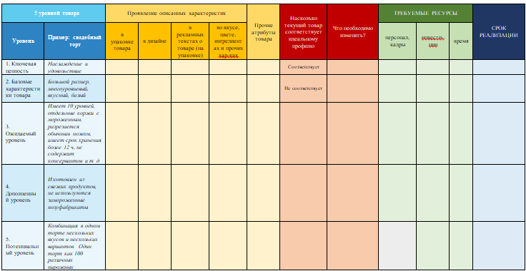 Структура комплексной контрольной работы: - титульный лист; - содержание (оглавление); - введение; - основная часть (практический блок); - заключение; - список используемой литературы; - приложения. ЗАДАНИЕ на выполнение комплексной контрольной работы Тема «Товарная и ассортиментная политика. Методика создания успешного товара через описание 5 уровней товара» Задание Заполните таблицу, приведя в ней обоснование и описание пяти базовых уровней разработки товара или услуги (таблица 1). Таблица 1 5 уровней товара