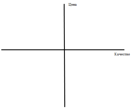 Задание 3 На основании таблиц 2 и 3 составьте карту позиционирования. Расположите своих прямых и косвенных конкурентов относительно двух осей координат – «Цена» и «Качество». Укажите в данной системе координат предполагаемое место для своего товара или услуги.