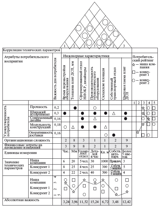 Задание 1. Проанализировать приведенные данные и разобрать алгоритм построения “Дома качества” по методическому пособию «ООК» или другим источникам 2. Выбрать свой объект исследования. 3. Определить требования потребителей, 4. Определить основные характеристики. 5. Построить дом/дома качества Пример «Дома качества» представлен на Рисунке 1.