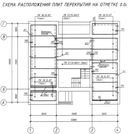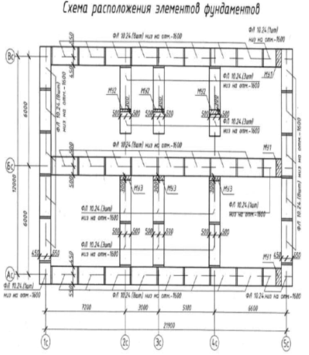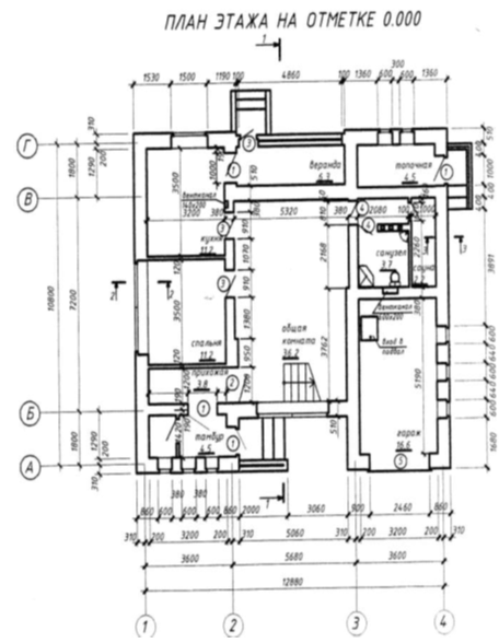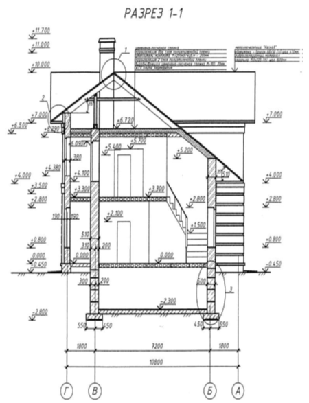 Примечание: подвал расположен в осях 2-3 и Б-В.