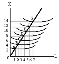 Определите: а) На сколько возрастают факторы производства и объём продукции в точках B, C, …, G? б) в районе каких точек пр. функция Q = Ф(K,L) выражает: – возрастающий эффект масштаба; – постоянный эффект масштаба; – снижающийся эффект масштаба? Задача 13. Один час инженерного труда стоит 50 руб., а час труда маляра – 20 руб. Инженер решил сам провести ремонт своей квартиры и умеет выполнять все необходимые работы не хуже маляра. На ремонт квартиры инженеру требуется 30 часов (помогает вся семья), а маляру – 40 часов. Стоимость материалов для ремонта составляет 6000 руб. Определите величину экономических (альтернативных) издержек: 1500, 600, 7500, 800, 2000, 8000 руб.? Задача 14. Используя диаграмму, изображенную ниже, ответьте на вопросы:
