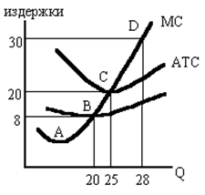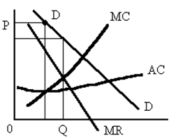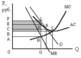 а) Какие параметры цены и отраслевого выпуска были присущи для условий совершенной конкуренции? б) Какую цену и величину выпуска выберет монополия на краткосрочный период? в) При каких параметрах цены и объема выпуска монополия максимизирует прибыль в долгосрочном периоде? г) Каков размер этой долгосрочной прибыли? Задача 7. На рисунке представлена фирма, действующая в условиях монополистической конкуренции:
