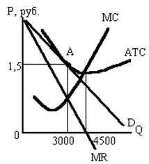 а) чему равна прибыль с единицы товара ______ и от общего объема продаж _____; б) могут ли фирмы отрасли извлекать большую прибыль, чем нормальная прибыль? в) сможет ли данная фирма поднять цену своего напитка без падения объема продаж до нуля и почему? г) как может измениться ситуация для данной фирмы в долгосрочном периоде и почему? Задача 10. Фирма, рассматриваемая в задаче №13, оказалась в условиях, когда при цене товара в 1,5 руб. экономическая прибыль равна 0, хотя МС при выпуске 3000 литров напитка значительно ниже 1,5 pyб. AТС минимальны при выпуске 4500 литров в месяц.