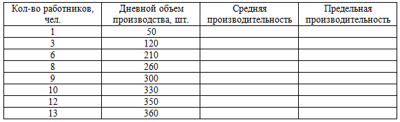 ВАРИАНТ 13 Задание № 1. Кондитерский цех после приобретения необходимого оборудования расширяет производство. В таблице представлены данные об изменении дневного объема производства с наймом дополнительных работников. Рассчитайте их предельную и среднюю производительность, заполнив таблицу.