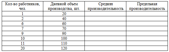 ВАРИАНТ 5 Задание № 1. Кондитерский цех после приобретения необходимого оборудования расширяет производство. В таблице представлены данные об изменении дневного объема производства с наймом дополнительных работников. Рассчитайте их предельную и среднюю производительность, заполнив таблицу.
