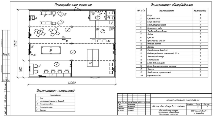 Рис. 3.1. Пример эскиза размещения санитарно-бытовых помещений, помещений общественного питания, точек питьевого обеспечения