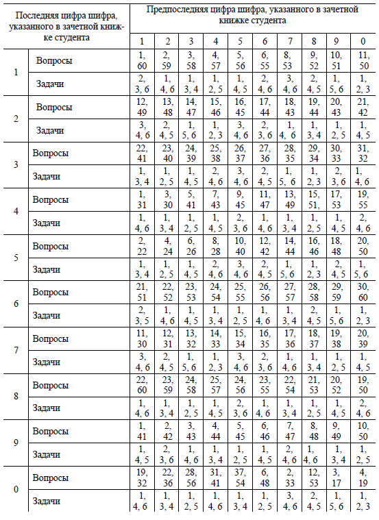 Структура контрольной работы: 1. Титульный лист (прил. А); 2. Содержание; 3. Изложение первого вопроса в реферативной форме; 4. Изложение второго вопроса в реферативной форме; 5. Решение задачи 1; 6. Решение задачи 2; 7. Решение задачи 3; 8. Список использованных источников. Таблица 3. Варианты исходных данных