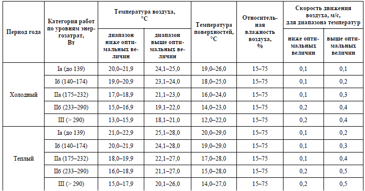 ПРИЛОЖЕНИЕ И Оптимальные величины показателей микроклимата на рабочих местах производственных помещений (СанПиН 2.2.4.548-96)