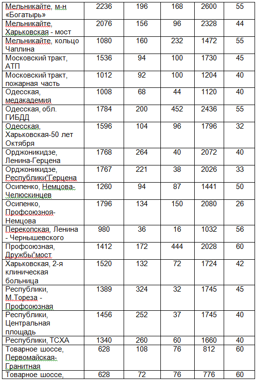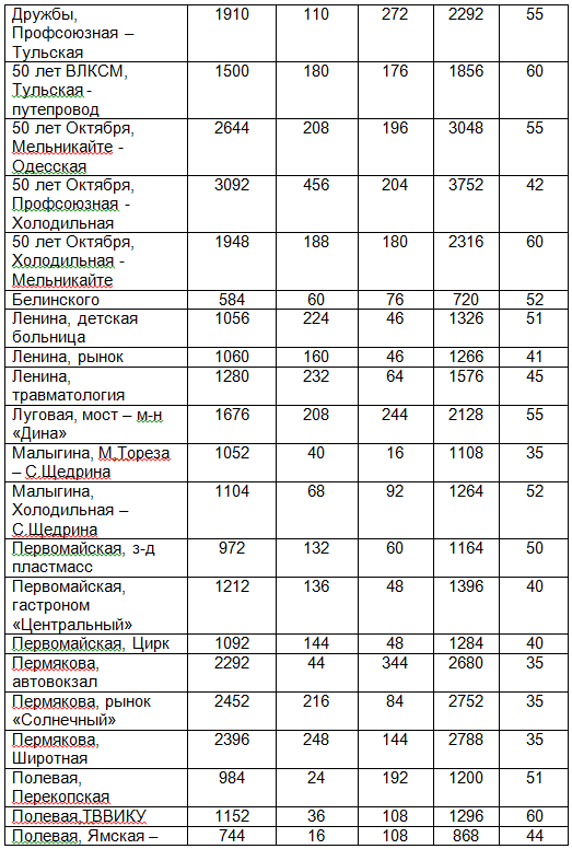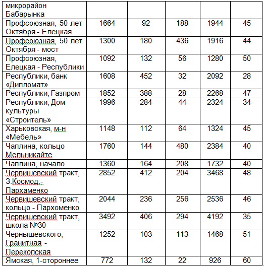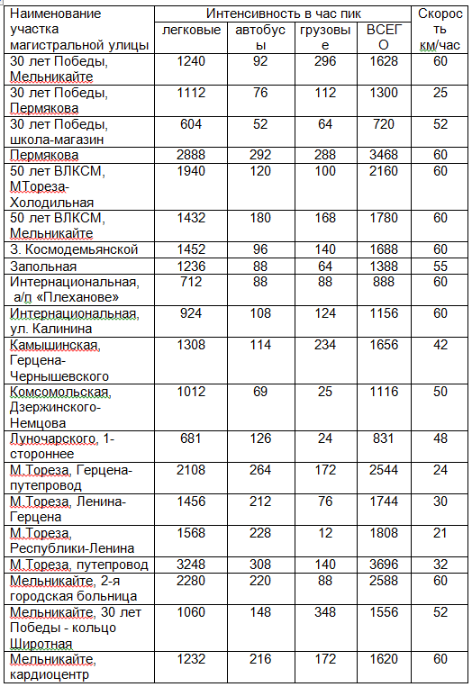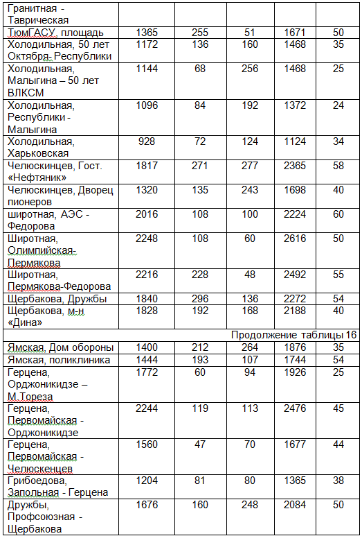 Работа №4 Тема: Оценка уровня загрязнения атмосферного воздуха отработанными газами автотранспорта на участке магистральной улицы (по концентрации СО) Таблица 16 - Интенсивность движения автотранспорта по магистральным улицам г. Тюмени