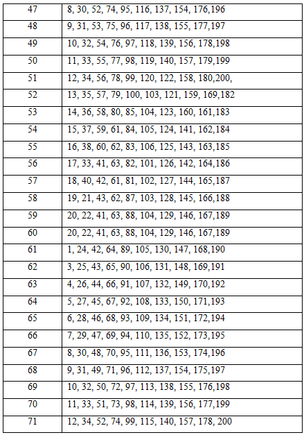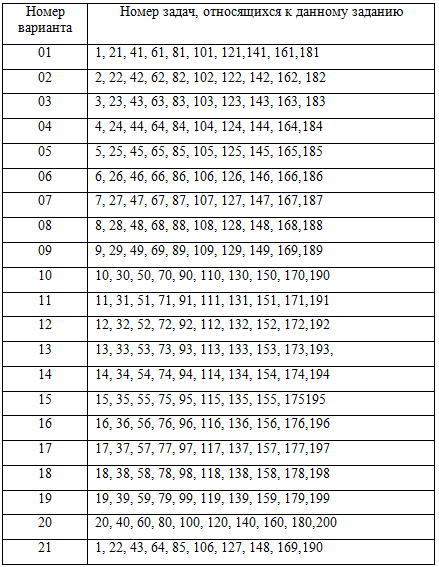 Таблица вариантов заданий для контрольной работы