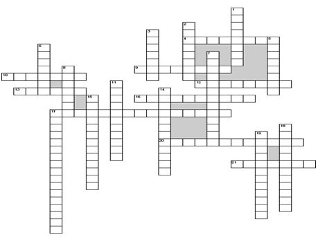 По горизонтали 4. Предмет изучения социальной философии является 9. Кто создал океаническую концепцию, согласно которой развитие человеческого общества определяется характером освоения водных бассейнов 10. Кто является первоэлементом социальной системы 12. К какому этапу всемирной истории относится Римский мир 13. Он считается свободным в восточном мире, но одновременно является рабом своих страстей 16. В каком мире согласно всемирной истории все свободны 17. Один из отличительных признаков социальной системы 20. Специфическая человеческая материальная и духовная форма активного отношения к окружающему миру, содержание которой составляет целесообразное осмысление, преобразование мира 21. Изучает функционирование общества, как единого целого социальная… По вертикали 1. Какую монархию Гегель признавал идеалом общественного развития 2. Прогрессивное развитие - это… 3. Какой философ рассматривал общество как организм 5. Высшая часть природы, обособившаяся, но неразрывно связанная с природой, развивающаяся на ее основе 6. Какой философ утверждал что общество - это система разделения ролей 7. Какое направление развития в целом присуще обществу 8. Постепенное мирное качественное преобразование общества 11. Учение, в котором признается развитие человека и общества только под влиянием климатическо-географических факторов - географический… 14. Процесс воздействия человека на природу с целью создания материальных благ и оказания услуг - это 15. Какая из областей общественной деятельности является осуществление хозяйственной деятельности общества, область создания материальных благ 17. Способность системы своей собственной деятельностью создавать и воссоздавать все необходимые условия существования 18. Сфера общественной деятельности, включающая все виды материальной деятельности и практики 19. Какой подход к изучению общества возник в 19 веке