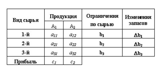 Предприятие предполагает выпускать два вида продукции А1 и А2, для производства которых используется сырье трех видов. Производство обеспечено сырьем каждого вида в количествах: b1, b2, b3 кг. На изготовление единицы изделия А1 требуется затратить сырья каждого вида а11, а21, а31 кг, соответственно, а для единицы изделия А2 - а12, а22, а32 кг. Прибыль от реализации единицы изделия А1 составляет с1 д. ед., для единицы изделия A2 - с2 д. ед.