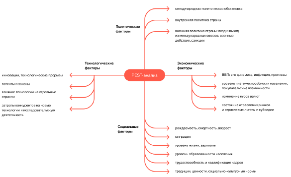 2.1 Анализ отрасли В данном параграфе должна быть представлена следующая информация: 1) динамика объемов продаж (оборота) в отрасли организации (за последние 3-5 лет) и другие отраслевые характеристики; 2) тенденции роста и развития отрасли; 3) ведущие предприятия отрасли; 4) движущие силы конкуренции и ключевые факторы успеха в данной отрасли; 5) PEST-анализ. На основании открытых источников необходимо проанализировать динамику и тенденции развития отрасли, сделать выводы о ее положении (прогрессирующее, стабильное, регрессирующее). Необходимо выявить ведущие предприятия отрасли, которые являются лидерами продаж, занимают большие доли рынка отрасли. Проанализировать и сделать выводы о факторах успеха этих предприятий: бренд, доступ к каналам распределения и финансированию, ценообразование, качество продукции, технологии, научно-исследовательские разработки или др. По итогу параграфа должен быть выполнен PEST-анализ по следующему алгоритму: 1. Определить факторы для анализа