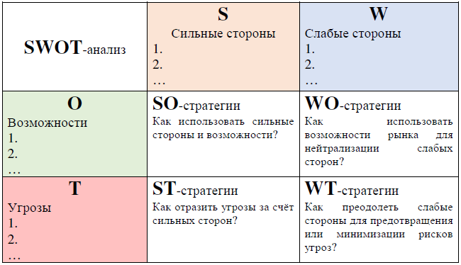 2.5 SWOT-анализ На основе анализа внешней и внутренней среды организации необходимо провести SWOT-анализ. Результаты должны быть представлены в виде матрицы: