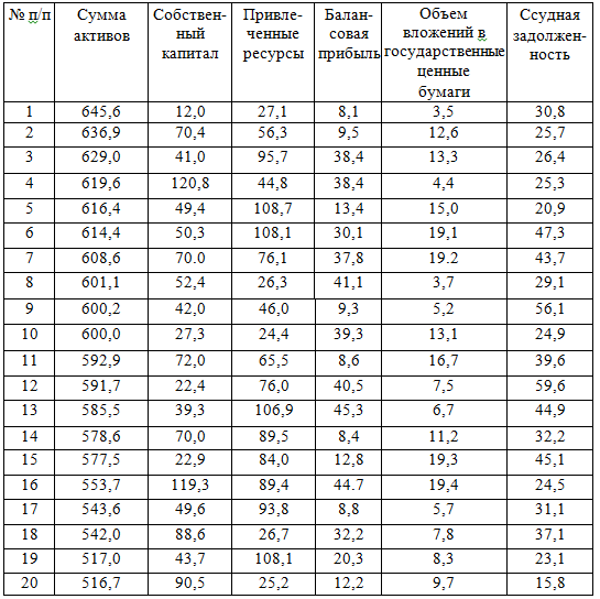 Вариант 4 Задача №1. Известны следующие данные по основным показателям деятельности крупнейших банков одной из областей России (данные условные) в (тыс. руб.):