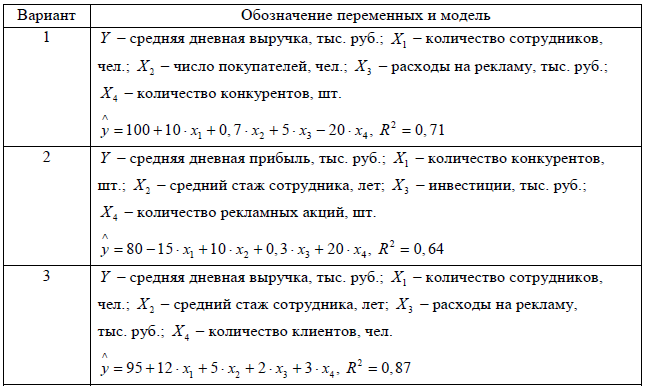 Таблица 5.2 – Данные для задания 2 (варианты 1–10)