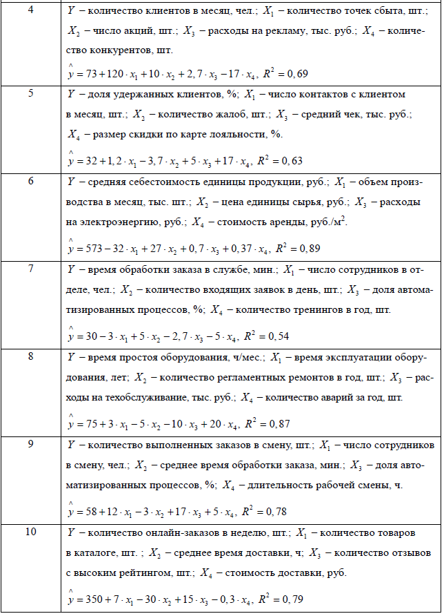 3. Рассчитав коэффициенты линейной модели, определите ее функциональную запись и проинтерпретируйте модель.