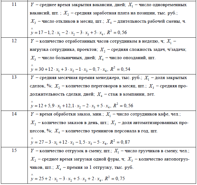Таблица 5.3 – Данные для задания 2 (варианты 11–20)