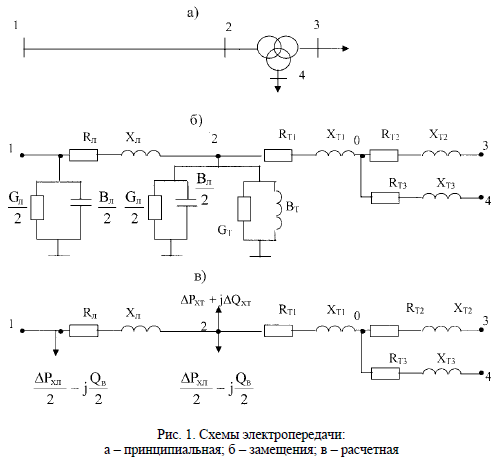 ЗАДАЧИ ПО ТЕМЕ: «ПАРАМЕТРЫ ЭЛЕМЕНТОВ ЭЛЕКТРИЧЕСКИХ СЕТЕЙ» Задача № 1На рис. 1 а изображена принципиальная схема электропередачи, состоящей из линии и понижающего трехобмоточного трансформатора (автотрансформатора). Для одного из заданных вариантов 1…9 (табл. 1) и одного из вариантов 1…10 (табл. 2) исполнения электропередачи вычертить: 1) принципиальную схему электропередачи, содержащую заданное количество линий и понижающих трансформаторов; 2) однолинейную схему замещения с учетом эквивалентирования линий и трансформаторов (рис. 1 б); 3) расчетную схему замещения (рис. 1 в).
