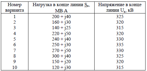 Определить потоки мощности в начале и в конце каждого участка линии, потери мощности и напряжения в линиях, модули напряжений в узлах, в том числе на шинах вторичного напряжения подстанций. Результаты расчетов представить в виде схемы с нанесенными на нее потоками мощности на участках и напряжениями в узлах, как показано в [3], c. 126. Таблица 11 Параметры линии электропередачи