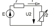 Задача №2 В электрической цепи, данной на рисунке 2, сопротивление нагрузки r2 может изменяться от нуля до бесконечности. Источник ЭДС Е имеет внутреннее сопротивление r. Построить график зависимости напряжения U2, мощности Р1, мощности Р2, коэффициента полезной мощности, тока I от величины r2, если известны значения трех величин, согласно таблице 2.