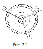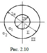 2. Цилиндрический конденсатор заполнен двухслойным диэлектриком. Относительные диэлектрические проницаемости слоев εа и εb. Геометрические размеры конденсатора r1, r2, r3 показаны на рис. 2.2. Определить емкость конденсатора на один метр длины. Таблица 2.2