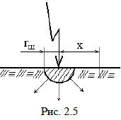 5. Определить закон распределения электрической напряженности и потенциалов в поле растекания зарядов, созданном металлическим полушаровым заземлителем с радиусом rш. Ток замыкания на землю I, удельная проводимость грунта =10-1 1/Ом м (рис. 2.5). Таблица 2.5