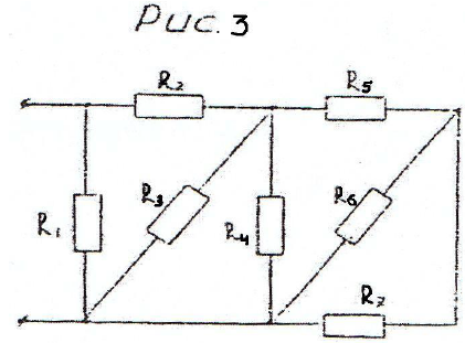 Задание № 2 В цепь постоянного тока включены семь резисторов. Заданы сопротивления каждого резистора, сила тока, либо падение напряжения, либо потеря мощности в одном из них. Определить ток в каждом резисторе, напряжение на резисторах и положение к цепи, составить уравнение баланса мощности для цепи (рис. 1, 2, 3). Данные для своего варианта взять из табл. 1 Таблица 1
