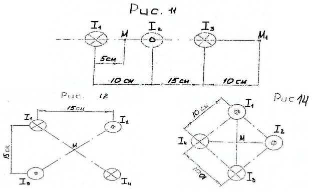Задание № 5 Определить силу, действующую на 1 м каждого из проводов, или магнитную индукцию в точках М или М1. Данные для своего варианта взять из табл. 4. Таблица 4