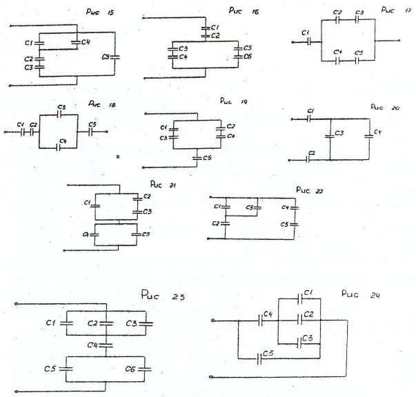 Задание № 6 Определить общую емкость цепи, напряжение на каждом конденсаторе, напряжение приложенное к цепи и энергию электрического поля каждого конденсатора. Данные для своего варианта взять из табл. 5. Таблица 5