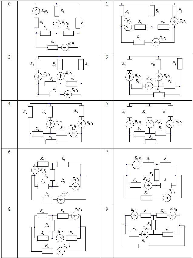 Номер схемы выбирается по предпоследней цифре шифра студенческого билета, номер варианта числовых значений – по последней цифре шифра студенческого билета.