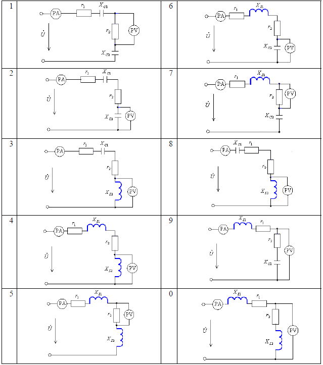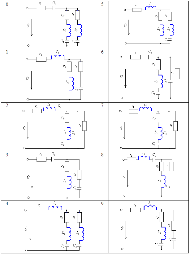 Схемы электрических цепей однофазного синусоидального тока (номер варианта выбирается по предпоследней цифре шифра студенческого билета)