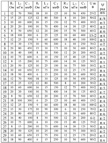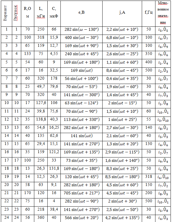 Задание: для гр. ЭN-05 Для электрической цепи, схема замещения которой представлена на рис 1-30, выполнить следующее: 1. Составить в общем виде систему уравнений на основании законов Кирхгофа для расчета токов во всех ветвях схемы, записав ее в двух формах: а) дифференциальной; б) комплексной, 2. Подготовить данные для расчета узловых потенциалов. 3. Вычислить токи ветвей 4. Составить баланс активных, реактивных и полных мощностей источников и приемников энергии. 5. Определить показания приборов. 6. Записать законы изменения мгновенных значений напряжения и тока, указанных в табл,4, и построить соответствующие им графики, 7. Построить топографическую диаграмму, совместив её с векторной диаграммой токов, для любого контура, содержащего источник ЭДС. 8. Записать, при каком соотношении параметров в части схемы, выделенной пунктиром, будет резонансный режим. Указания: а) коэффициент связи двух элементов с взаимной индуктивностью k=0,5; б) тип операционного усилителя студент берет по указанию преподавателя.