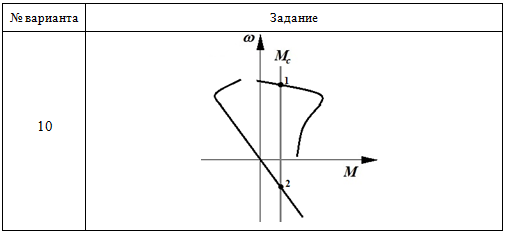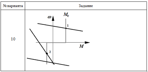 Практическое задание 5 Тема 11. Режимы работы привода с двигателем постоянного тока независимого возбуждения Задание Изучить тормозные режимы работы привода с двигателем постоянного тока независимого возбуждения. 1. Определите режимы работы привода на основе двигателя постоянного тока независимого возбуждения, соответствующие точкам 1 и 2 на заданных механических характеристиках. Проанализируйте механические характеристики и ответьте на вопросы: - Как называется установившийся режим работы привода, соответствующий точке 1? - Как называется установившийся режим работы привода, соответствующий точке 2? - Каким путем двигатель может быть переведен из одного установившегося режима (точка 1) в другой (точка 2)? 2. Изобразите траекторию, соответствующую переходу электродвигателя из точки 1 в точку 2. 3. Определите в каком режиме работал электродвигатель в первый момент времени при переходе из точки 1 в точку 2. 4. Для выполнения задания используйте бланк задания 5. Выбор варианта задания производится по первой букве фамилии (таблица 5.1 и таблица 5.2). Таблица 5.1 Выбор варианта задания