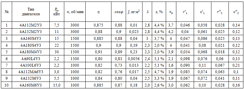 Таблица 7.2 Паспортные данные асинхронного двигателя