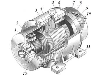 Практическое задание 4 Тема 6. Устройство, принцип действия и область применения электрических машин постоянного тока Задание Изучить конструкцию машины постоянного тока. На рисунке 4.1 изображена конструкция машины постоянного тока с цифровым обозначением элементов, входящих в её состав.