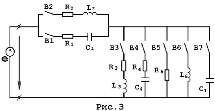 Электрическая цепь переменного синусоидального тока с частотой f=50 Гц. Находится под действием источника напряжения е =Еm sin(ωt+φe). С учётом положения выключателей В1- В7 определить для своего варианта: