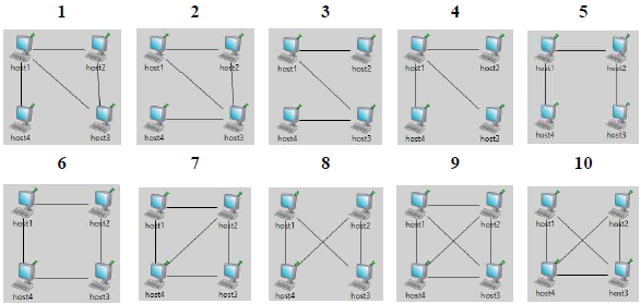 Лабораторная работа №1 Построение сети с примитивной топологией в симуляторе OMNeT++ Задание: 1. Создать простой модуль Node для описания хоста сети, содержащий переменное количество шлюзов типа inout (ввод-вывод). Сохранить описание простого модуля в файле .ned. 2. В графическом редакторе NED создать топологию сети из четырёх узлов (хостов) в соответствии с вариантом. Топология сети (рисунок 17) и виды соединений заданы в таблице 1 по варианту (последние две цифры пароля). Сохранить топологию в файле .ned. 3. Просмотреть NED- и С++-коды узла. 4. Скомпилировать и запустить задачу на выполнение, посмотреть и зафиксировать результат. Виды топологий представлены на рисунке 17 (выбираете ту, что указана в таблице 1 для вашего варианта). | ||||||||||||||||||||||||||||||||||||||||||||||||||||||||||||||||||||||||||||||||||||||||||||||||||||||||||||||||||||||||||||||||||||||||||||||||||||||||||||||||||||||||||||||||||||||||