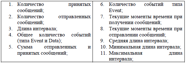 Распределение интервалов времени между сообщениями (табл.2)