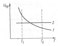 Рисунок 7 107. На рисунке 8 для керамического опорного изолятора показаны значения пробивного напряжения в зависимости от температуры окружающей среды отдельно для теплового (зависимость 1) и электрического (зависимость 2) пробоя. Чему будет равно пробивное напряжение (отметить на графике) этого изолятора и какой вид пробоя будет наблюдаться в нем при температурах Т1, Т2, Т3?